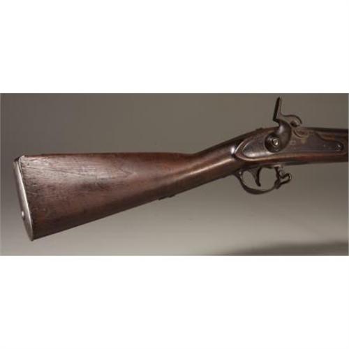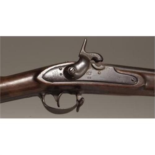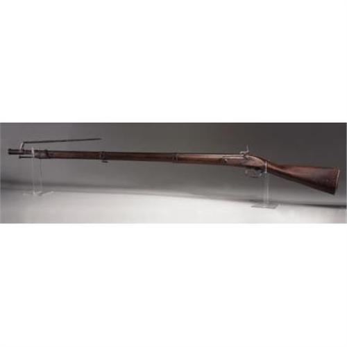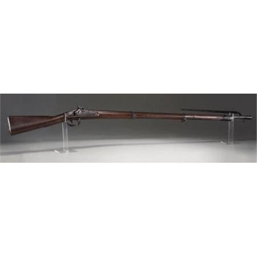 <B>SPRINGFIELD MUSKET DATED 1826.</B></I> This musket has been converted to percussion. Block letters “I S” and oval cartouche with script initials marked on the stock, rear of the lower tang. Traces of 2 oval cartouches on left stock ahead of the wrist area. Block letters “A C” stamped in iron ahead of the triggerguard bow. Eagle and “V P” stamped at breech; iron ramrod. A bayonet is included.<BR><BR><B>Condition: </B></I>All iron parts retain a dark brown patina with pitting at breech. The wood shows a fine old patina with no major losses. The 1816 bayonet measures 19 inches overall, and is lightly cleaned with some pitting. The bayonet is marked “J B”.<BR><BR><b>Shipping:</b> Requires 3rd Party Shipping (<a target="_blank" href="http://www.heritageauctions.com/common/shipping.php">view shipping information</a>)