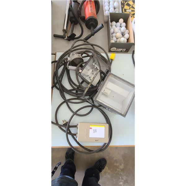 GOLF CLUBS, TRIPOD, CANE AND CLOSET RACH