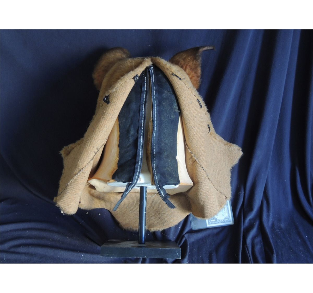 Each mask is OOAK, and made of latex and polyfoam with resin teeth and hand-laid and hand-painted synthetic fur on the faces. Each has an inner zippered sock and clasps to close the fur.