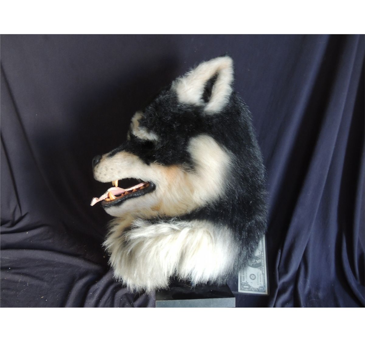 Each mask is OOAK, and made of latex and polyfoam with resin teeth and hand-laid and hand-painted synthetic fur on the faces. Each has an inner zippered sock and clasps to close the fur.