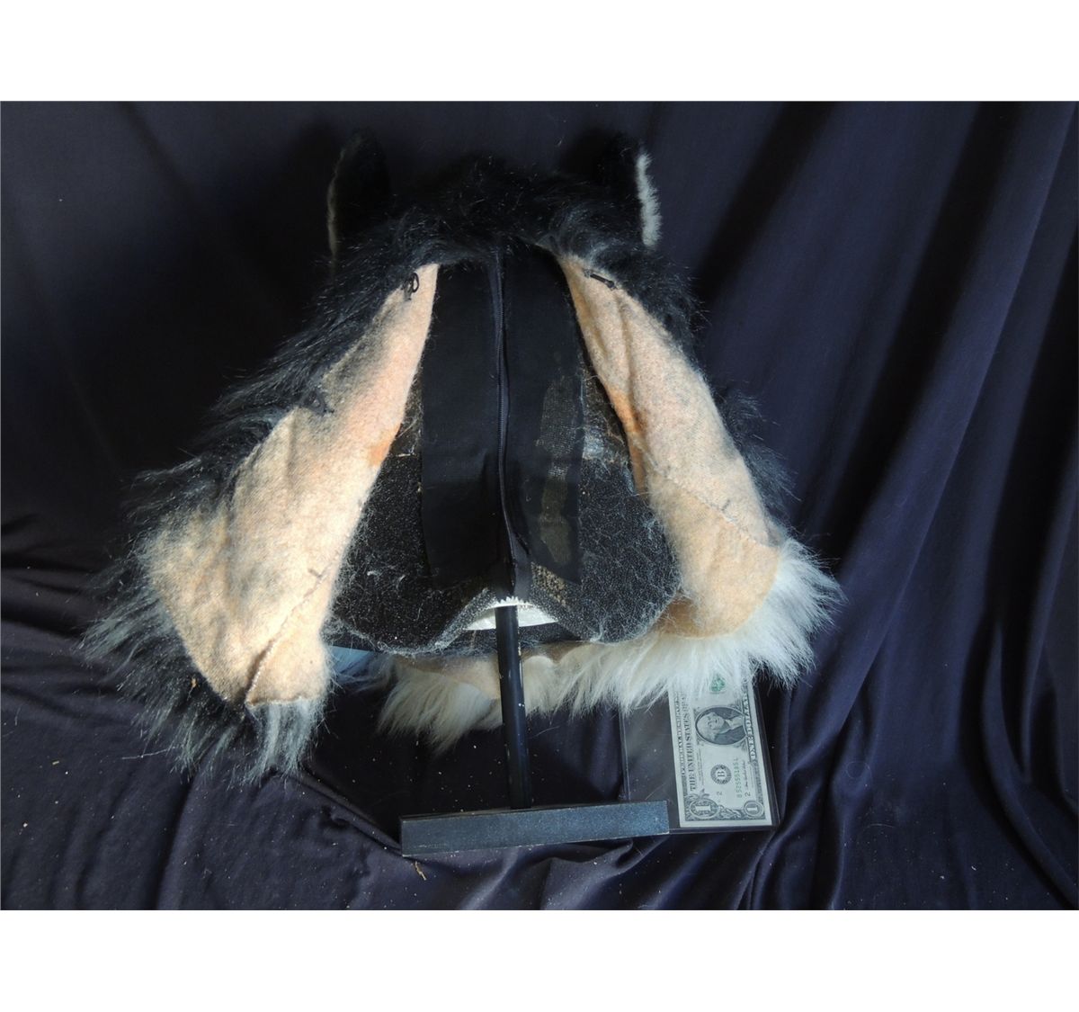 This is 1 of 7 different OOAK dog masks that were created by hand for an elaborate sight gag in Rusty (TALES FROM THE HOOD) Cundieff's romantic comedy SPRUNG. The female lead referrs to a bunch of horny guys at a party as "a pack of dogs" and they morph into just that.