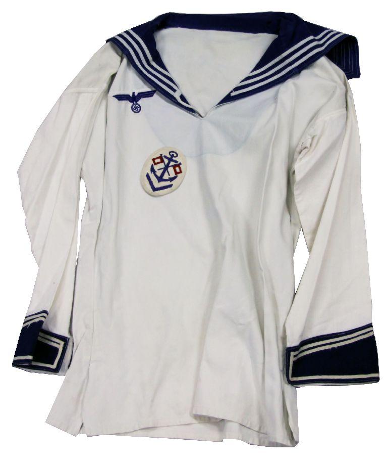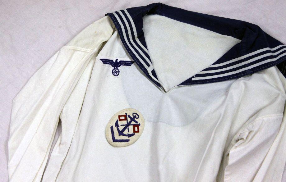 Spurious WWII Kriegsmarine sailor shirt, with signal sailor patch. Appears as Third Reich breast eagle possibly added to post war shirt.