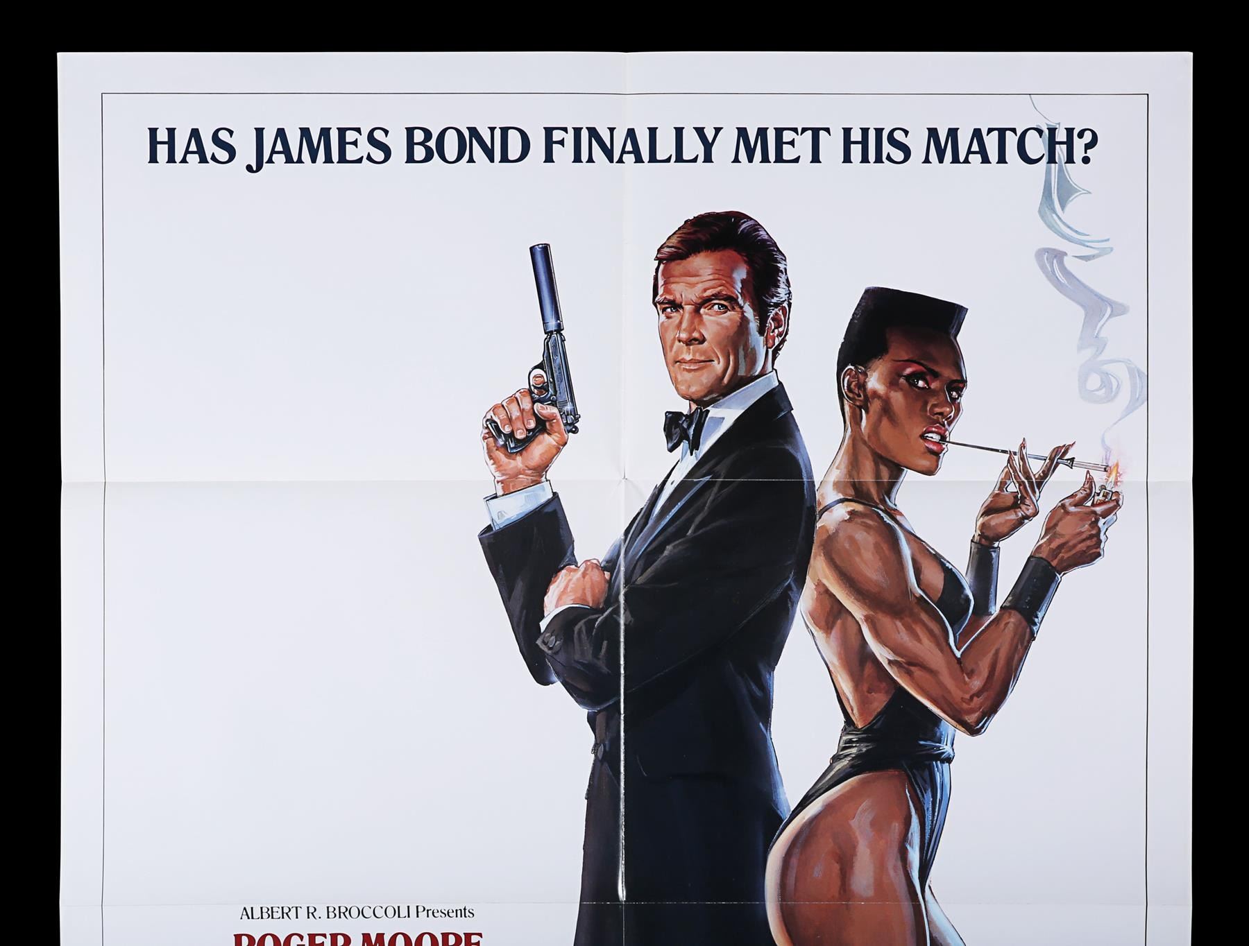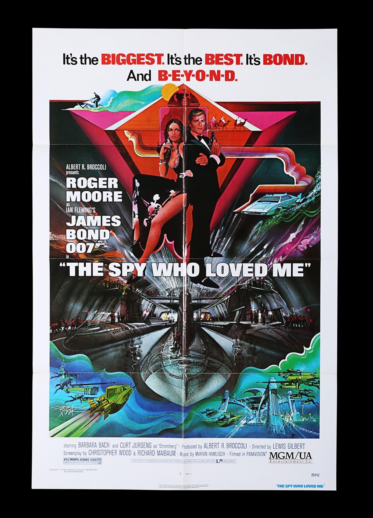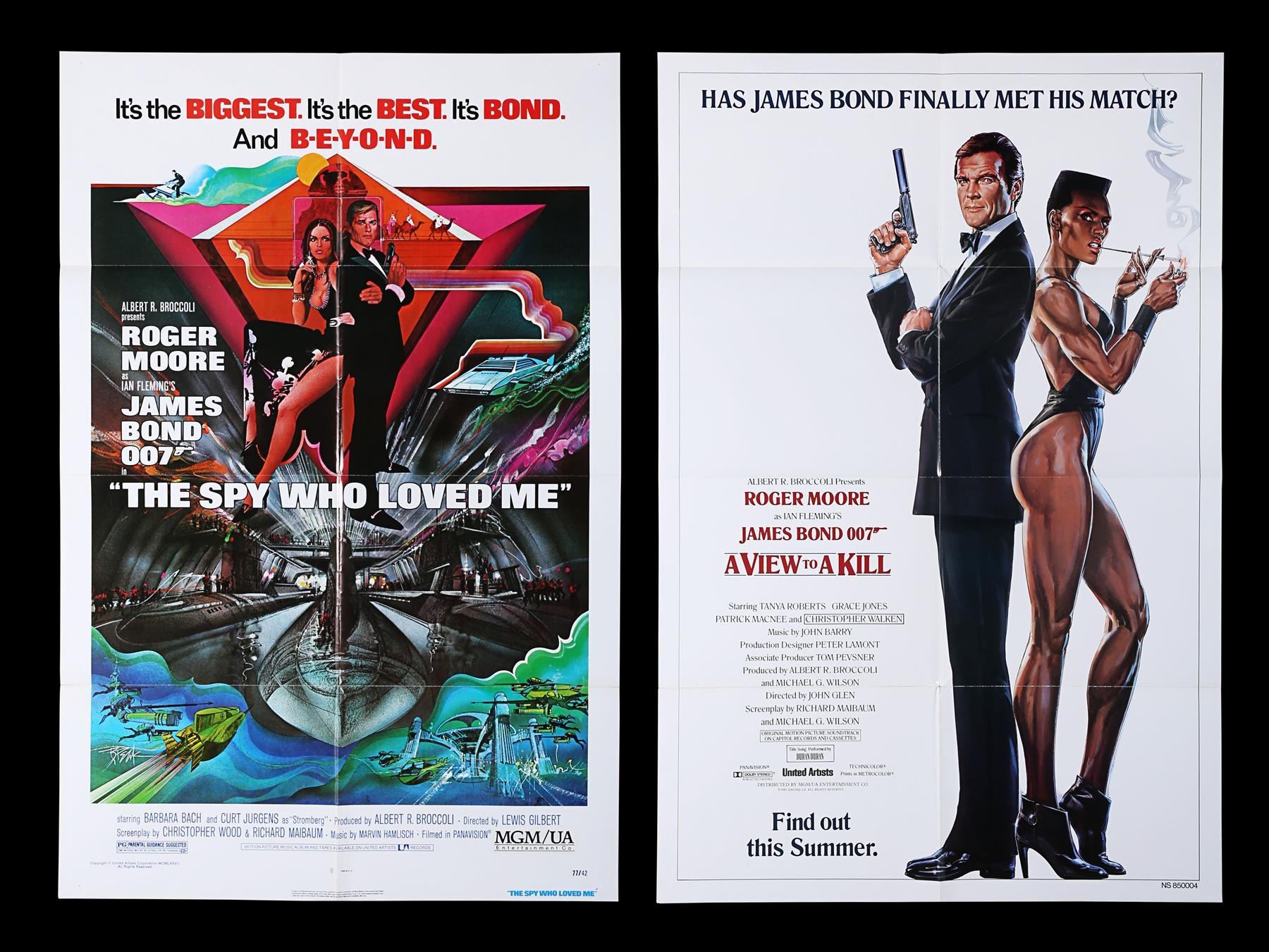 Two US One-Sheet James Bond film posters from the Roger Moore era. The"Spy Who Loved Me" (1977) features Bob Peak artwork and the "A View to a Kill" (1985) Advance displays the artistic skills of Daniel Goozee.