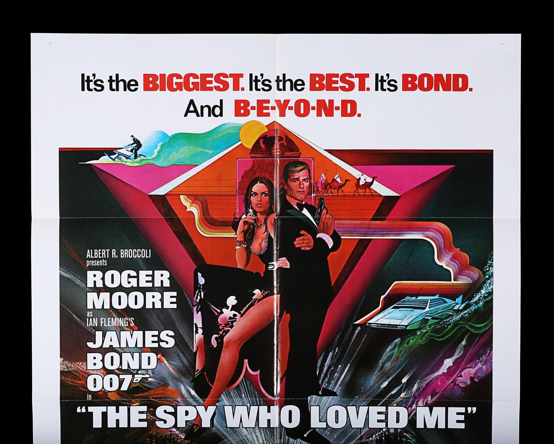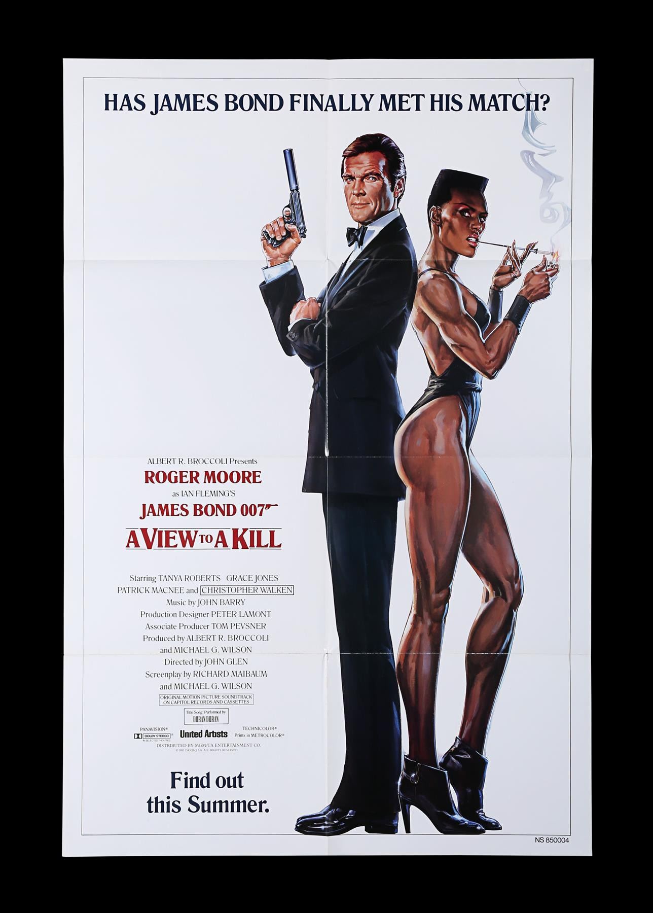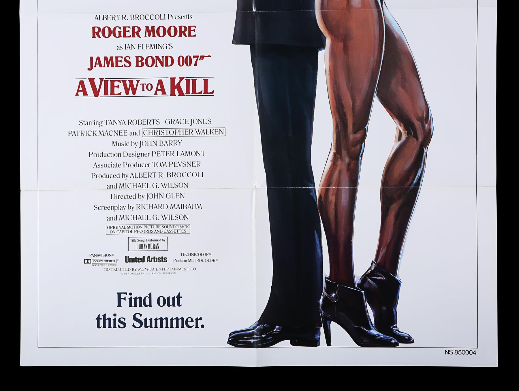 Two US One-Sheet James Bond film posters from the Roger Moore era. The"Spy Who Loved Me" (1977) features Bob Peak artwork and the "A View to a Kill" (1985) Advance displays the artistic skills of Daniel Goozee.