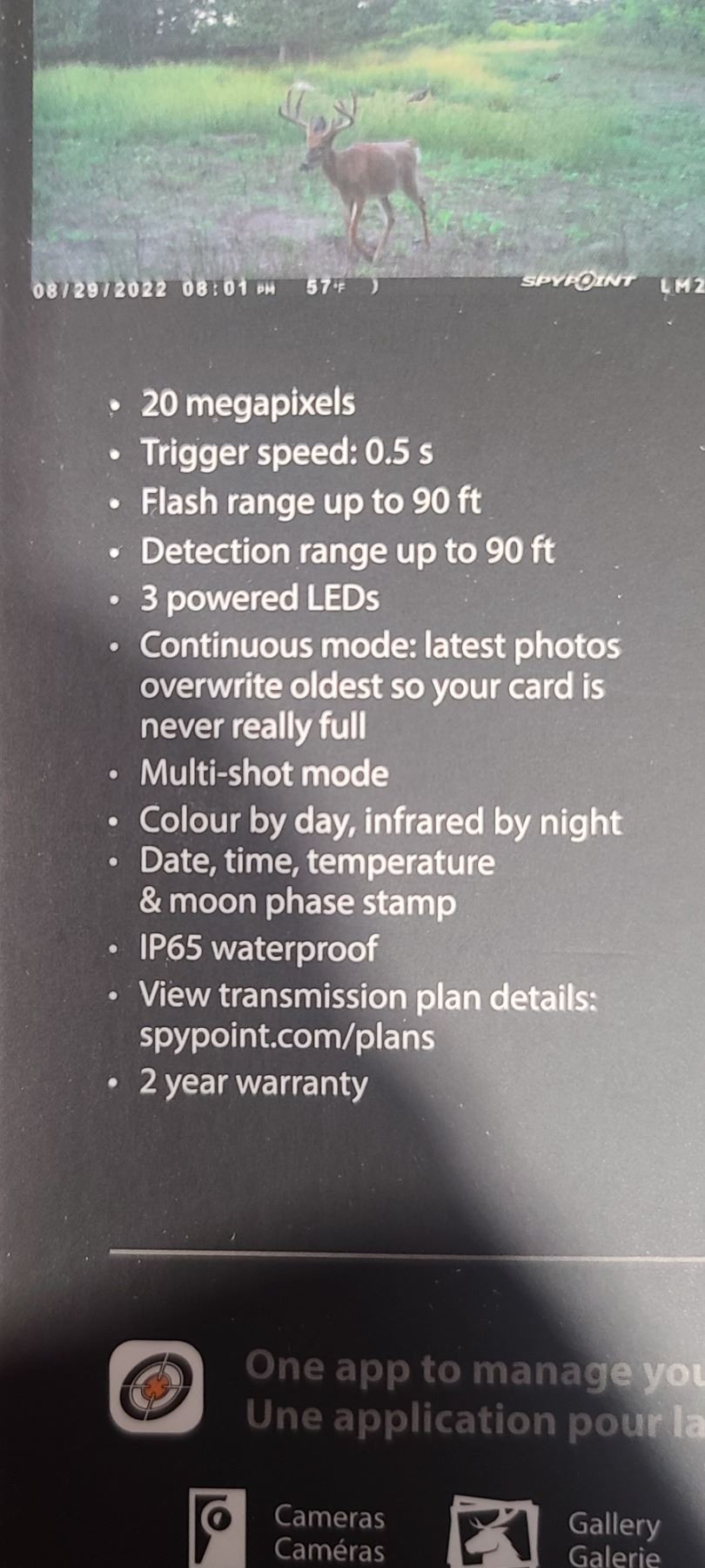 SPYPOINTLM2 CELLULAR TRAIL CAMERA NEW IN BOX