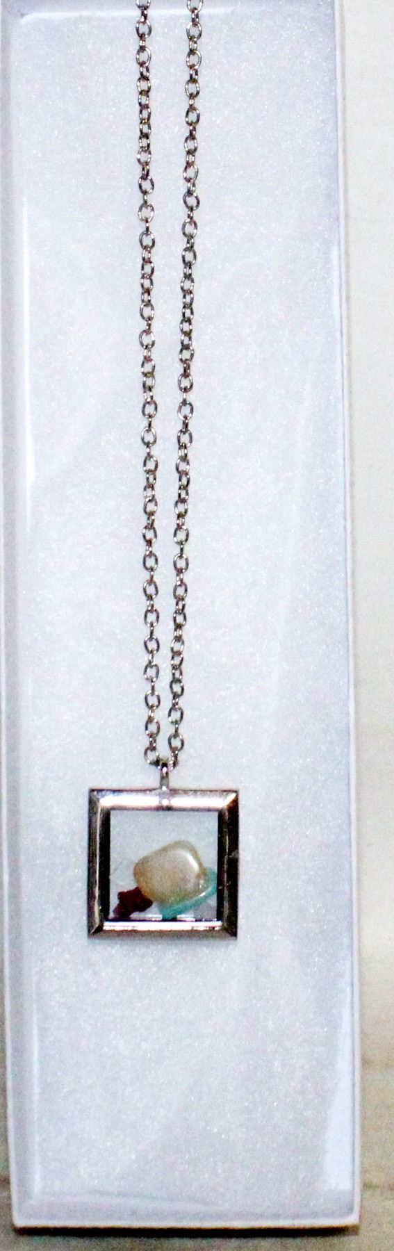 SQUARE LOCKET WITH ASST GEMSTONES 20"