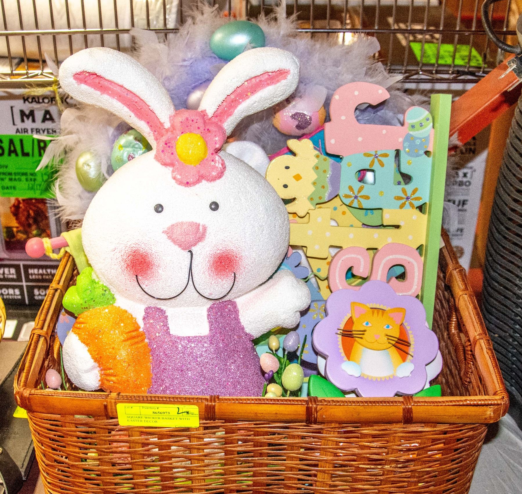 INCL. DECORATIVE EGG WREATH, LARGE BUNNY, WOOD EASTER SIGN, WOOD SPRING SIGN, WALL WELCOME SIGN (JUST ADD CHOCOLATES)