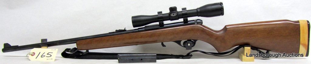 NON-RESTRICTED, SEMI AUTO, 22LR, 21" BARREL, SN A561984. WOOD EXTENDED WITH A FEW MARKS, BLUING GOOD, BORE EXCELLENT. COMES WITH BUSHNELL 4 X 32 SCOPE.