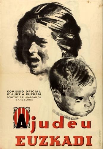 HELIOS GOMEZ. S.R.I. CONGRES DE LA SOLIDARITAT. Al dorso impresión de otro cartel AJUDEU EUZKADI. 1937. 100x70cm. (40x27in.). Litografía. A-.