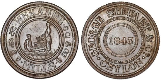 Rev: WEKANDE MILLS, Ceylonese women filling sack, English, Tamil and Sinhalese legend, each native language.