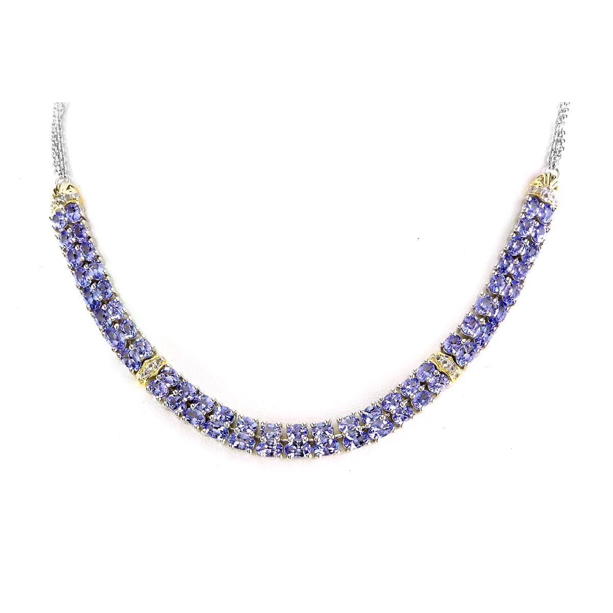 SS 17IN+3EXT TWO TONE TANZANITE / WHITE TOPAZ NECKLACE (#4210TWT) TOTAL CT WEIGHT 9.784