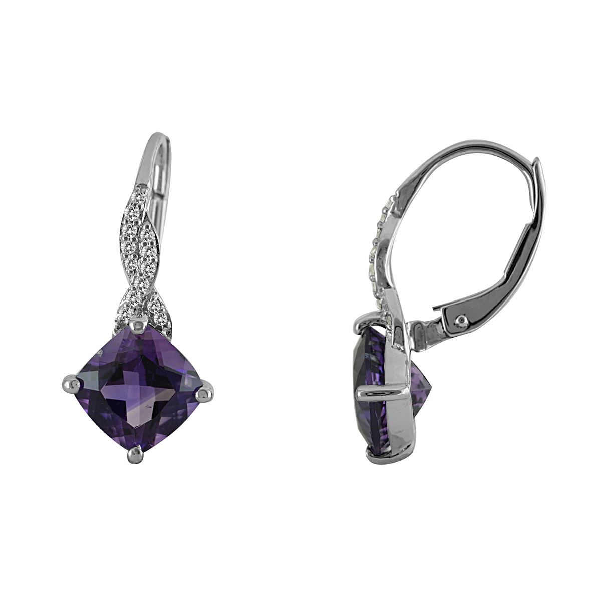 SS AMETHYST / DIAMOND LEVERBK EARRINGS (#10167A) TOTAL CT WEIGHT 2.3