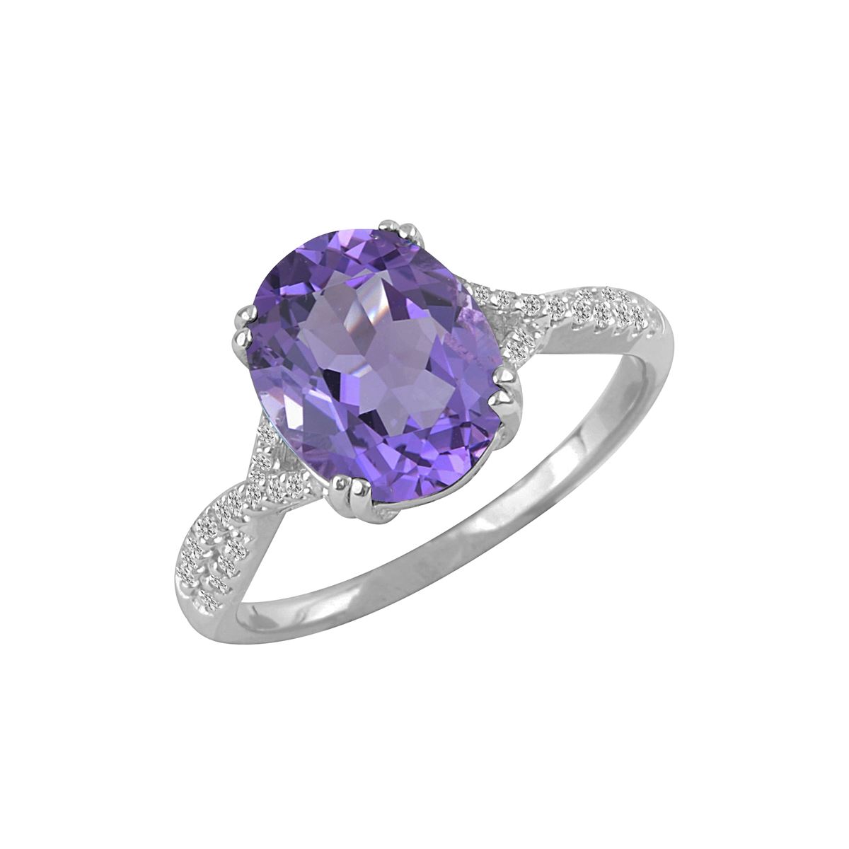 SS AMETHYST / DIAMOND RING - Size 7 (#10168A) TOTAL CT WEIGHT 2