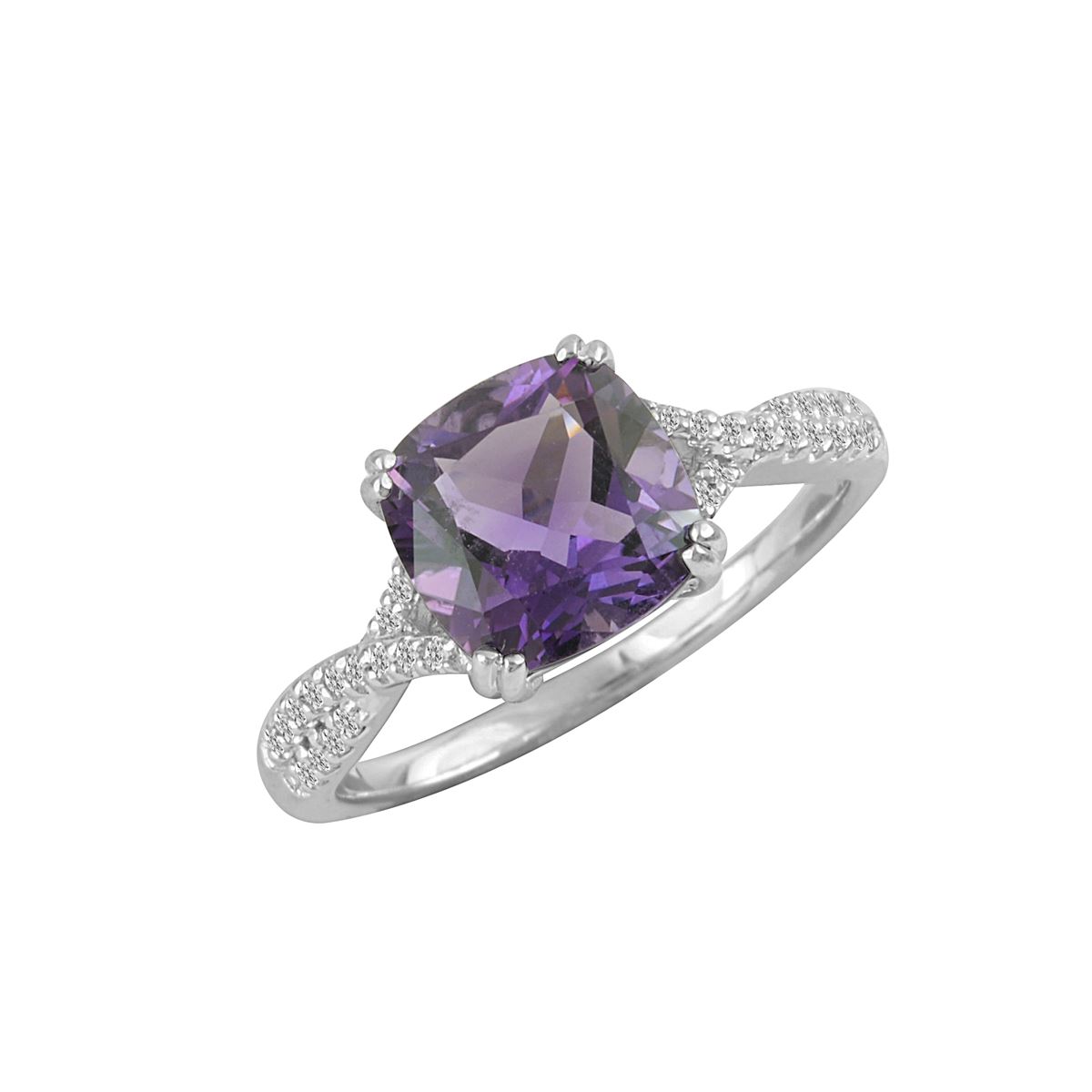SS AMETHYST / DIAMOND RING - Size 7 (#10171A) TOTAL CT WEIGHT 1.6