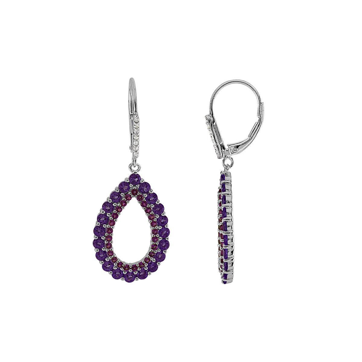 SS AMETHYST / RHODOLITE / DIA LEVERBK EARRINGS (#7134MUL1) TOTAL CT WEIGHT 3.09
