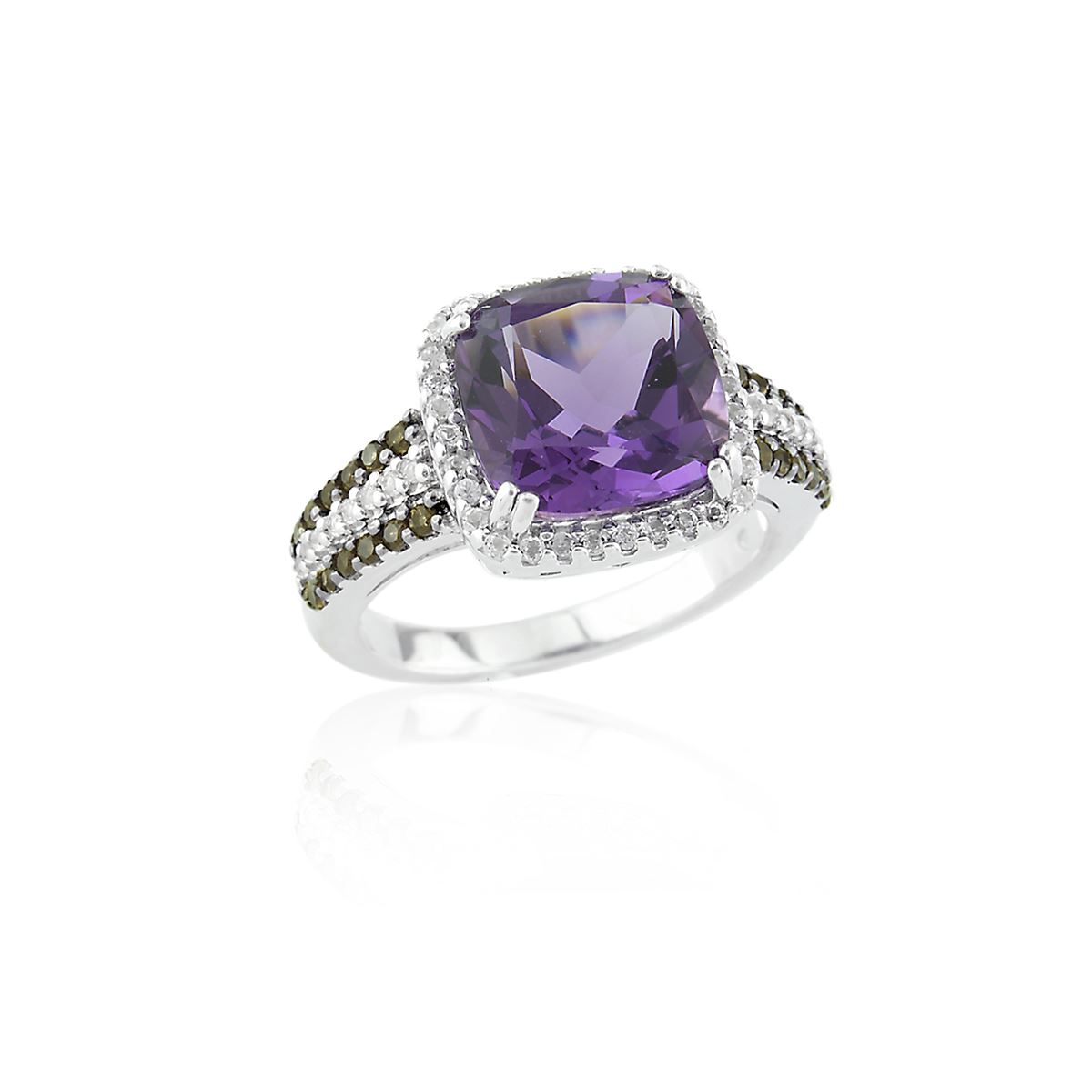 SS AMETHYST / SMOKEY QUARTZ / WHITE TOPAZ RING - Size 7 (#9484MUL1) TOTAL CT WEIGHT 4.168