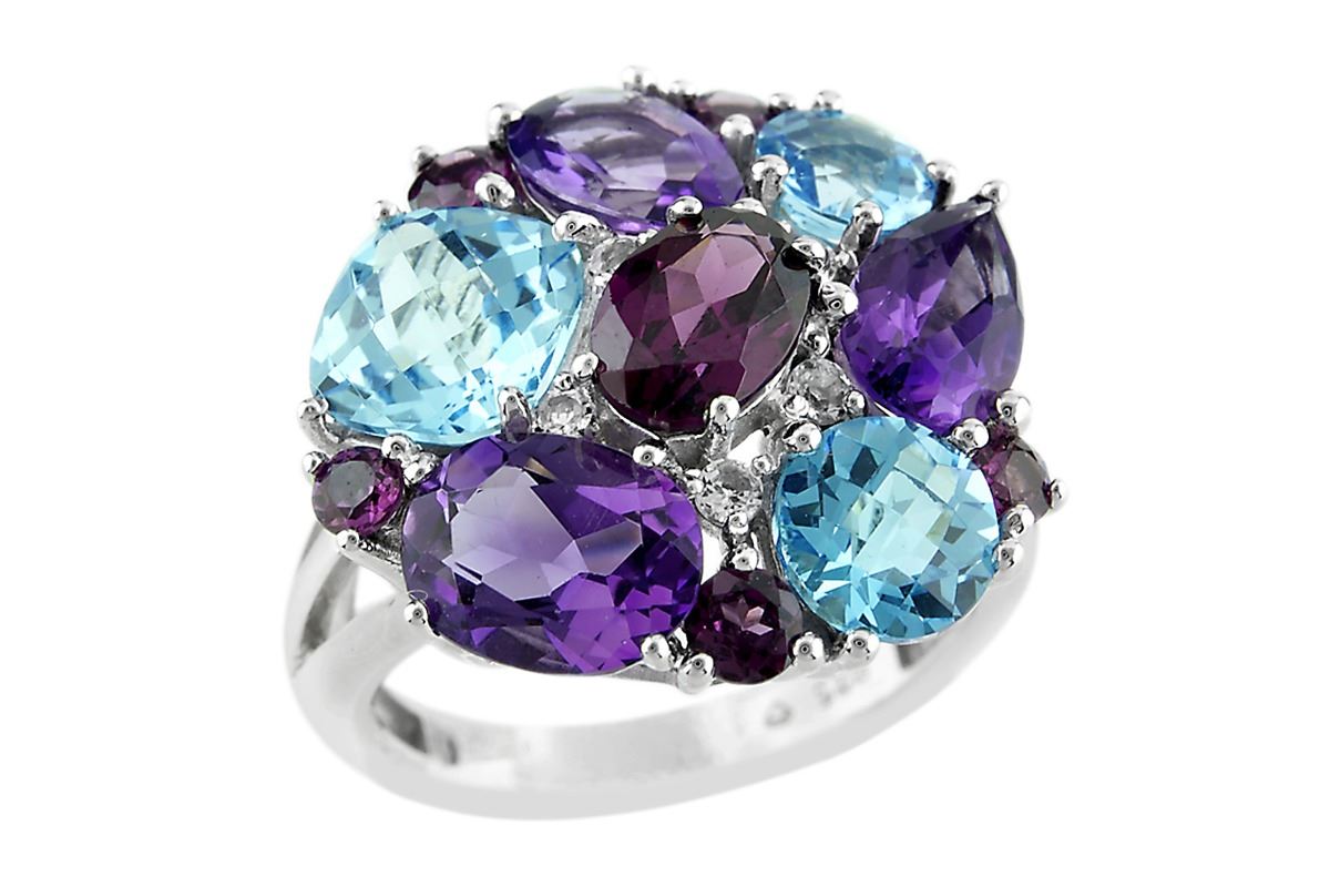 SS AMETHYST / SWISS BLUE TOPAZ / RHODOLITE / WHITE TOPAZ RIN - Size 7 (#8652MUL) TOTAL CT WEIGHT 7.175