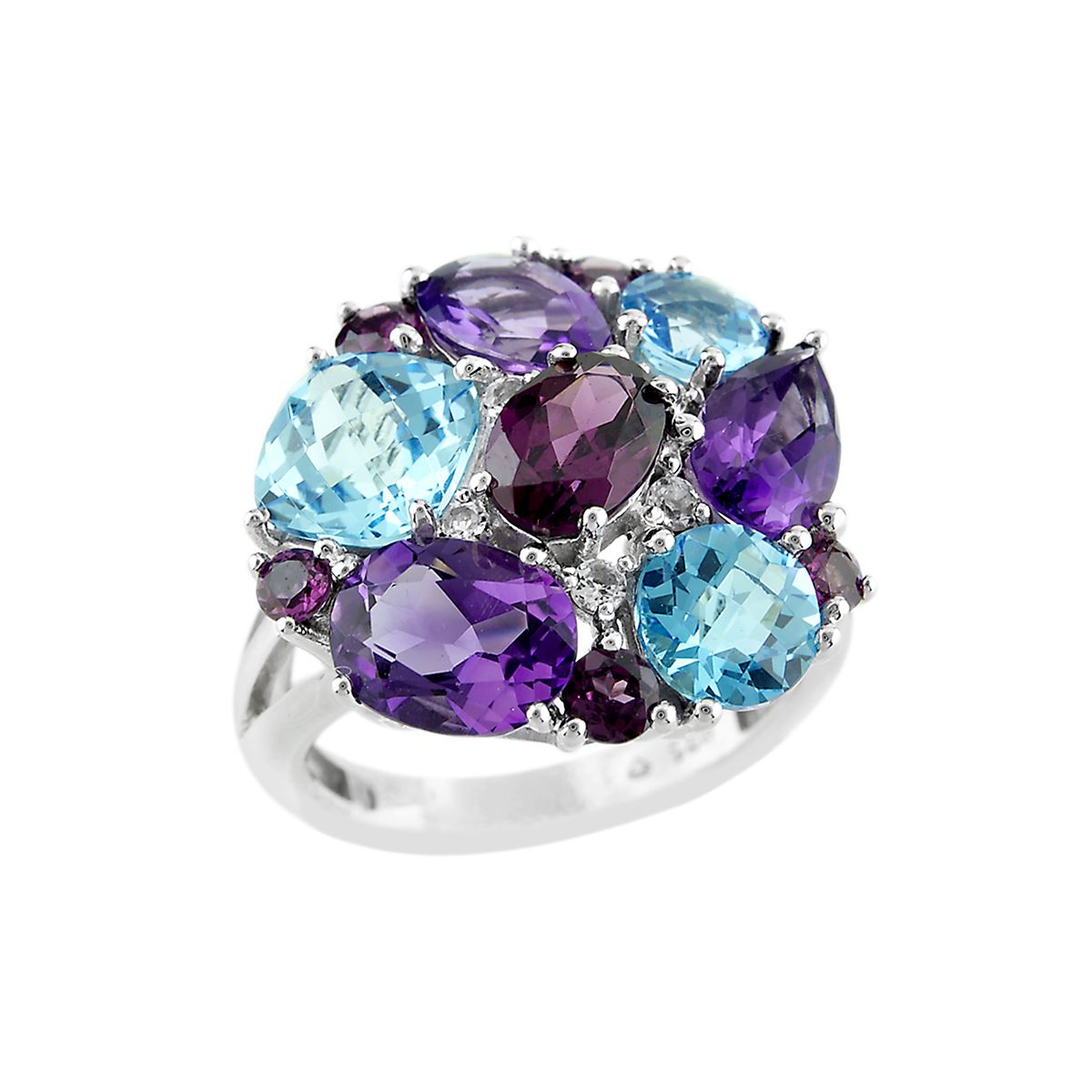 SS AMETHYST / SWISS BLUE TOPAZ / RHODOLITE / WHITE TOPAZ RIN - Size 7 (#8652MUL) TOTAL CT WEIGHT 7.175