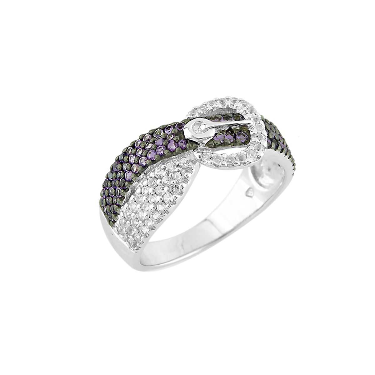 SS AMETHYST / WHITE TOPAZ BELT RING - Size 7 (#9487AWT) TOTAL CT WEIGHT 1.02