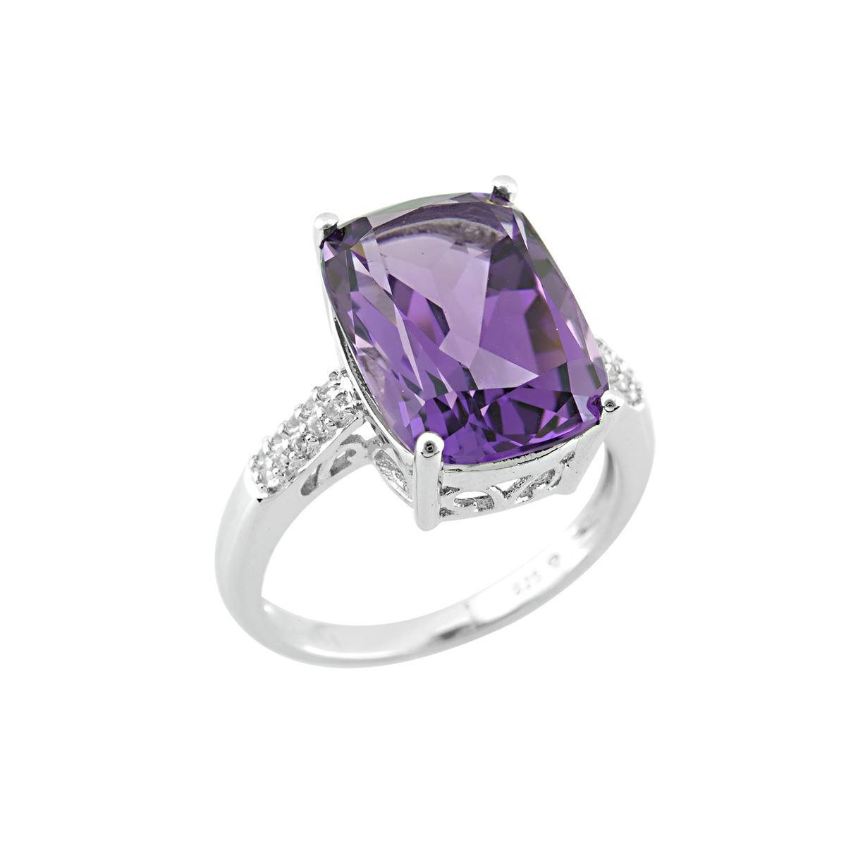 SS AMETHYST / WHITE TOPAZ RING - Size 7 (#9531AWT) TOTAL CT WEIGHT 6.48