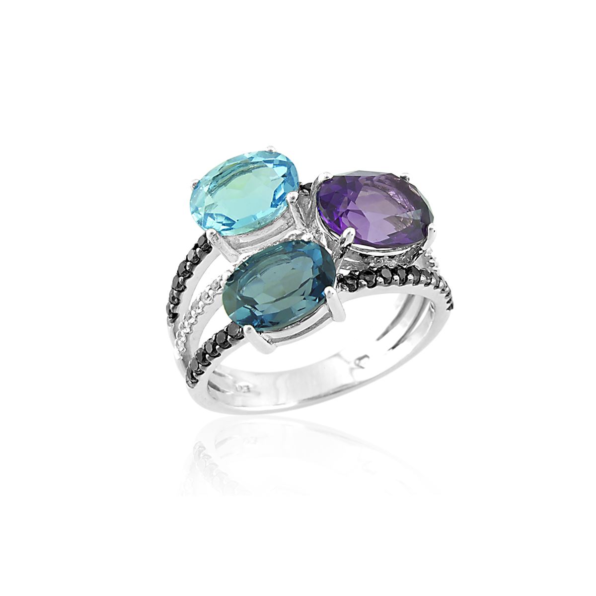 SS AMY / SWISS BLUE TOPAZ / LDN BLUE TOPAZ / SQ / WHITE TOPAZ RING - Size 7 (#9485MUL) TOTAL CT WEIGHT 5.008