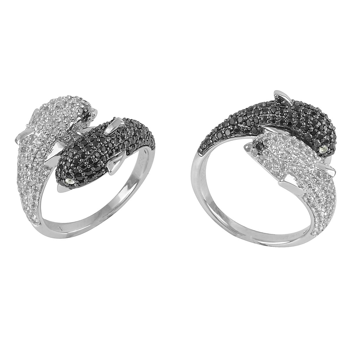SS BLACK SPINEL / WHITE TOPAZ / WZ DOLPHIN BYPASS RING - Size 7 (#10198MUL) TOTAL CT WEIGHT 0.6392