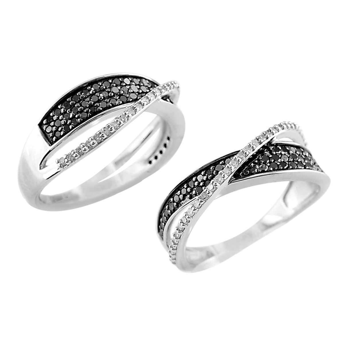SS BLACK / WHITE DIAMOND RING - Size 7 (#8920D-BLK) TOTAL CT WEIGHT