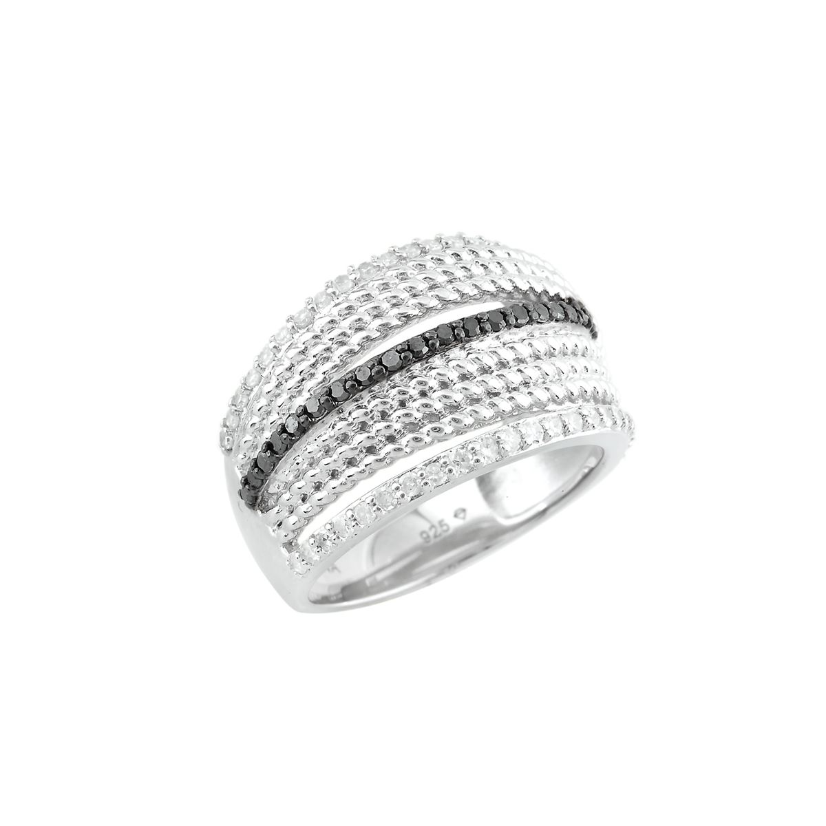 SS BLACK / WHITE DIAMOND RING - Size 7 (#9456D-BLK) TOTAL CT WEIGHT