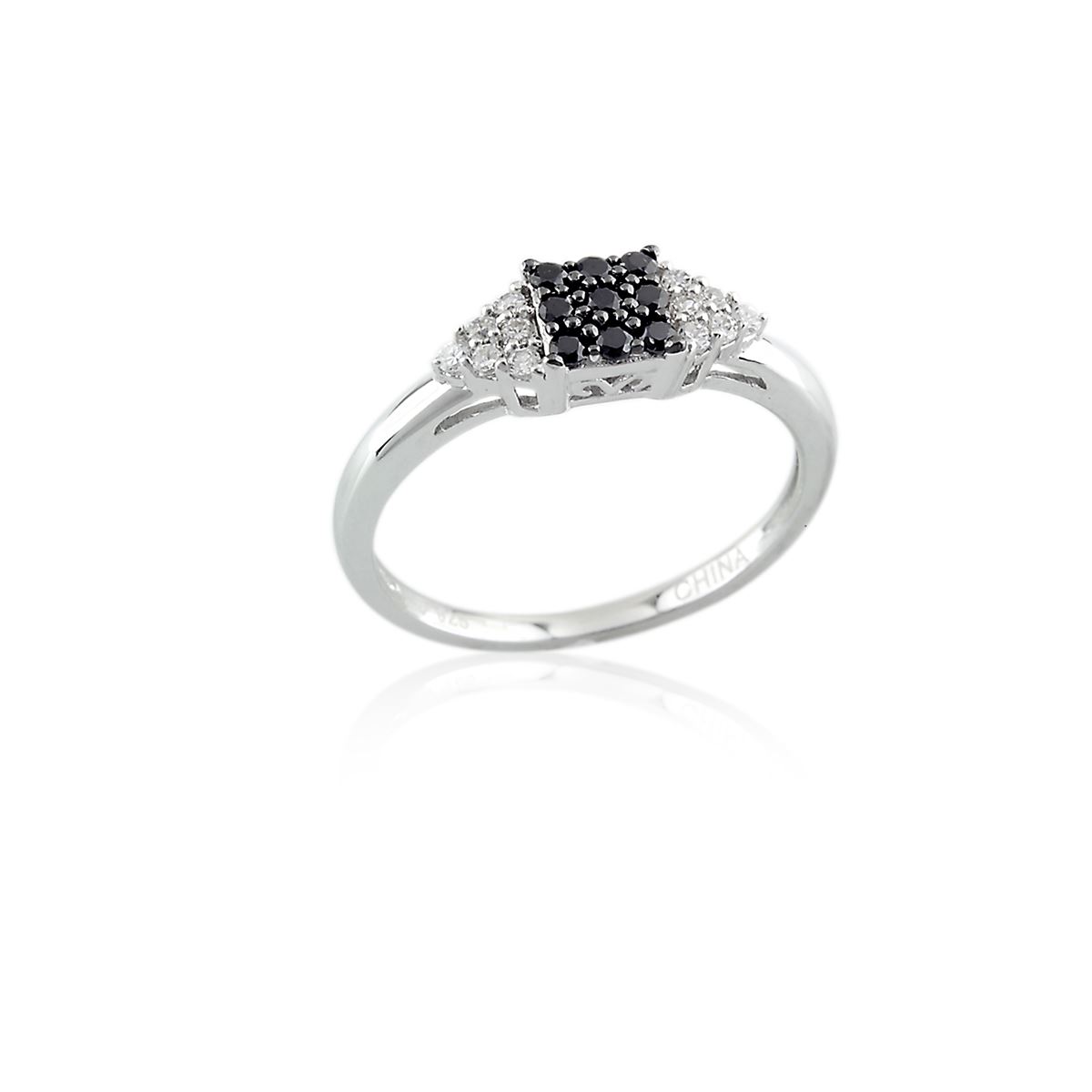 SS BLACK / WHITE DIAMOND RING - Size 7 (#9471D-BLK) TOTAL CT WEIGHT