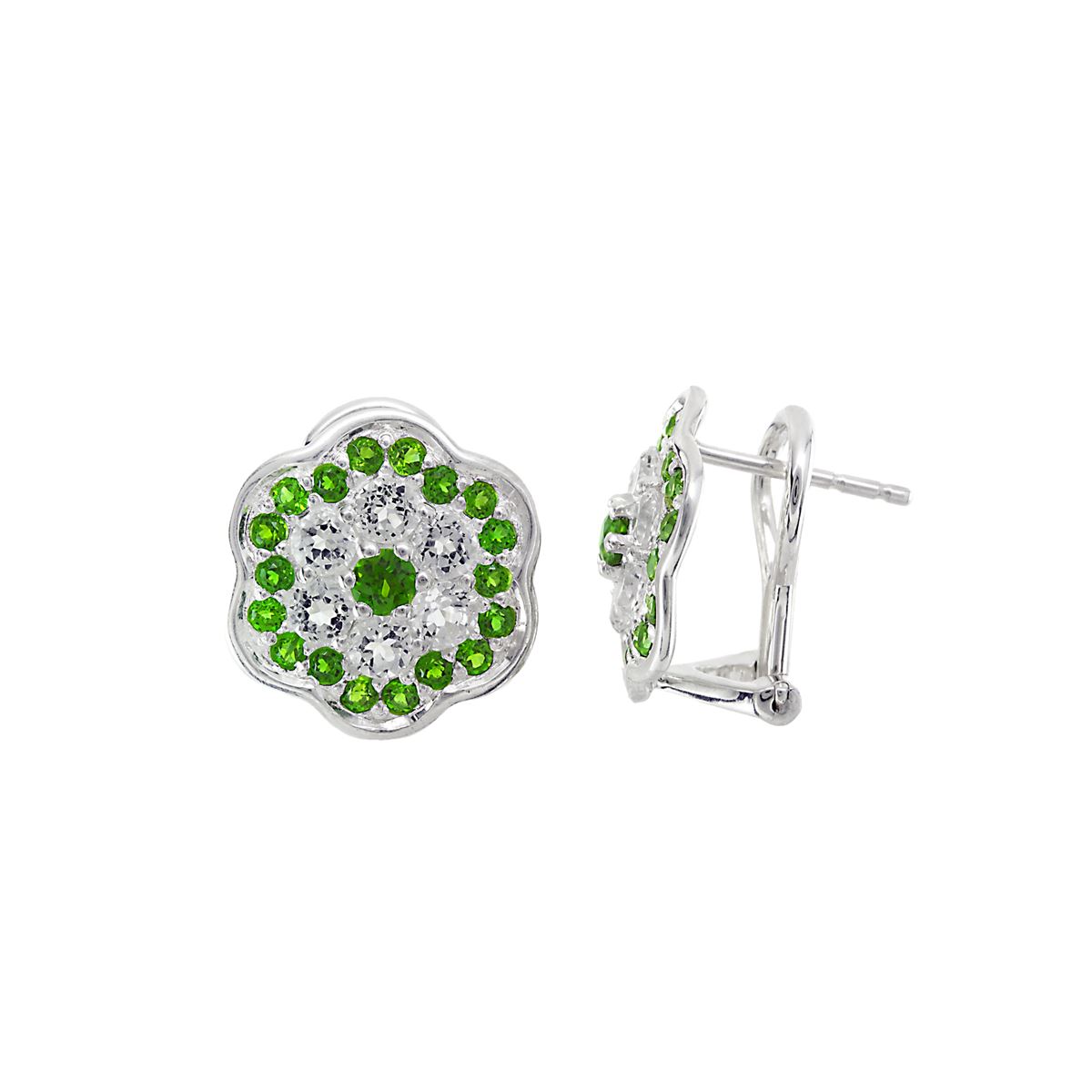 SS CHROME DIOPSIDE / WHITE TOPAZ OMEGA EARRINGS (#7882MUL) TOTAL CT WEIGHT 3.434