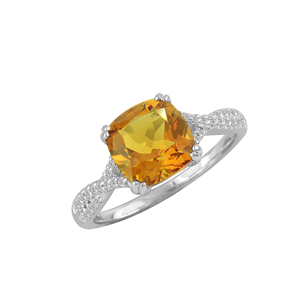 SS CITRINE / DIAMOND RING - Size 7 (#10171C) TOTAL CT WEIGHT 1.7