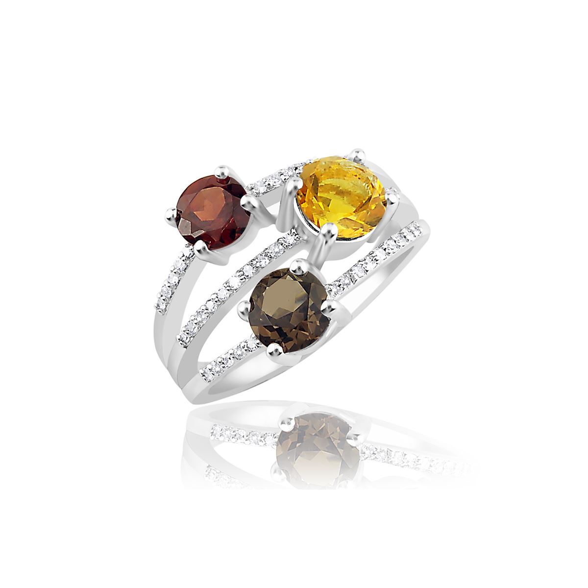 SS CITRINE / SMOKEY QUARTZ / GARNET / DIAMOND RING - Size 7 (#9752MUL1) TOTAL CT WEIGHT 1.61