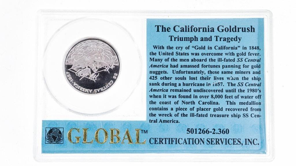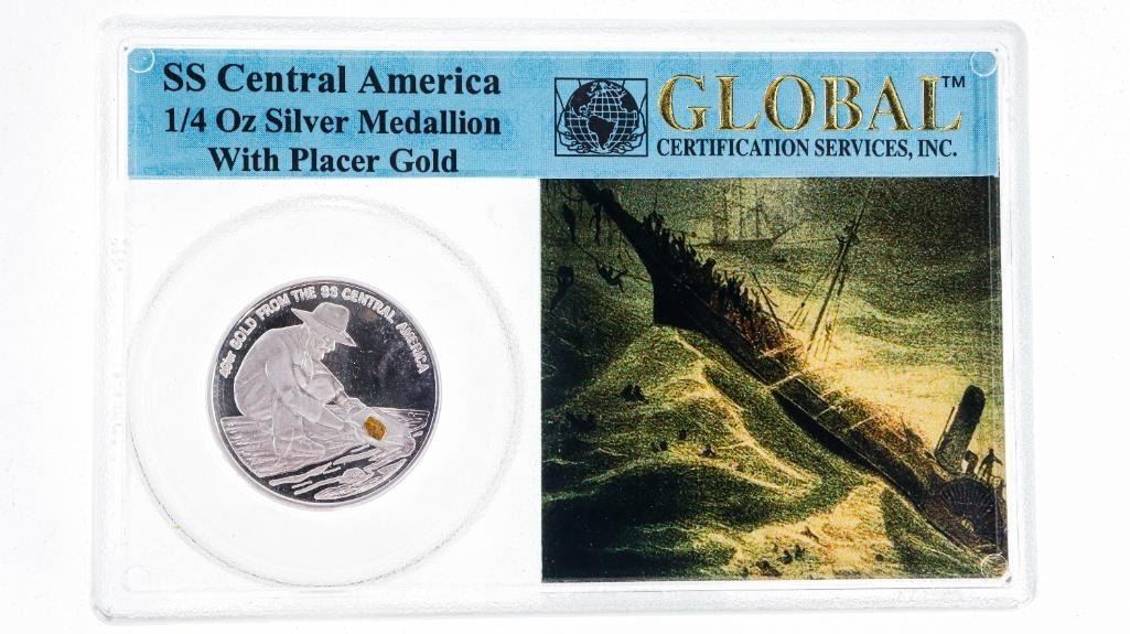 SS Central America 1/4 OZ. Silver Medallion With Placer Gold - The California Goldrush Triumph & Tragedy