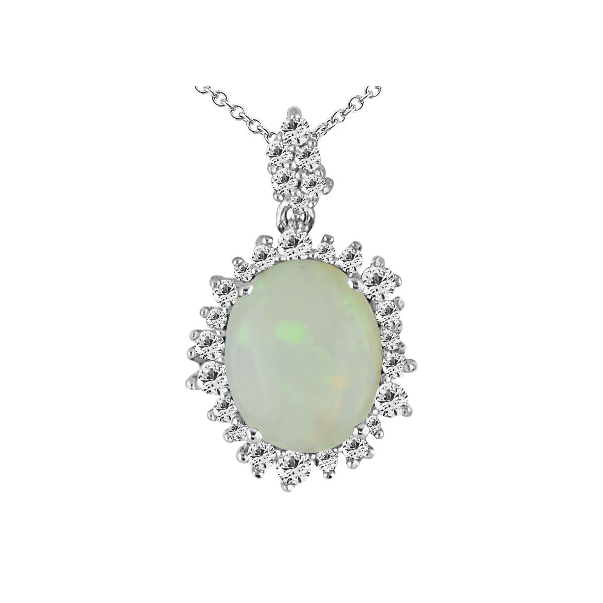 SS ETHIOPIAN OPAL / CREATED-WHITE SAPPHIRE PENDANT (#10513MUL1) TOTAL CT WEIGHT 1.652