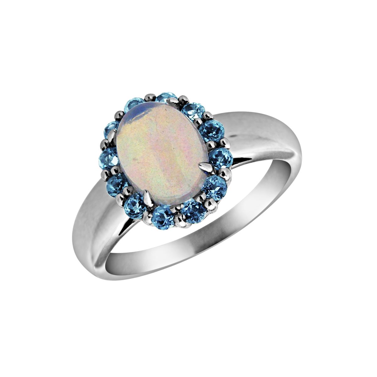 SS ETHIOPIAN OPAL / SWISS BLUE TOPAZ RING - Size 7 (#9894MUL1) TOTAL CT WEIGHT 1.66