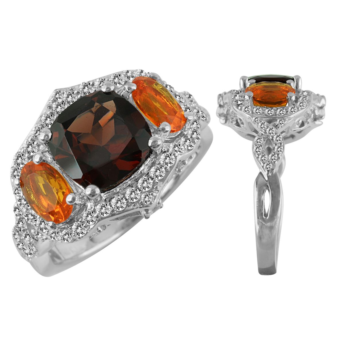SS GARNET / FIRE OPAL / WHITE TOPAZ RING - Size 7 (#10212MUL) TOTAL CT WEIGHT 3.428
