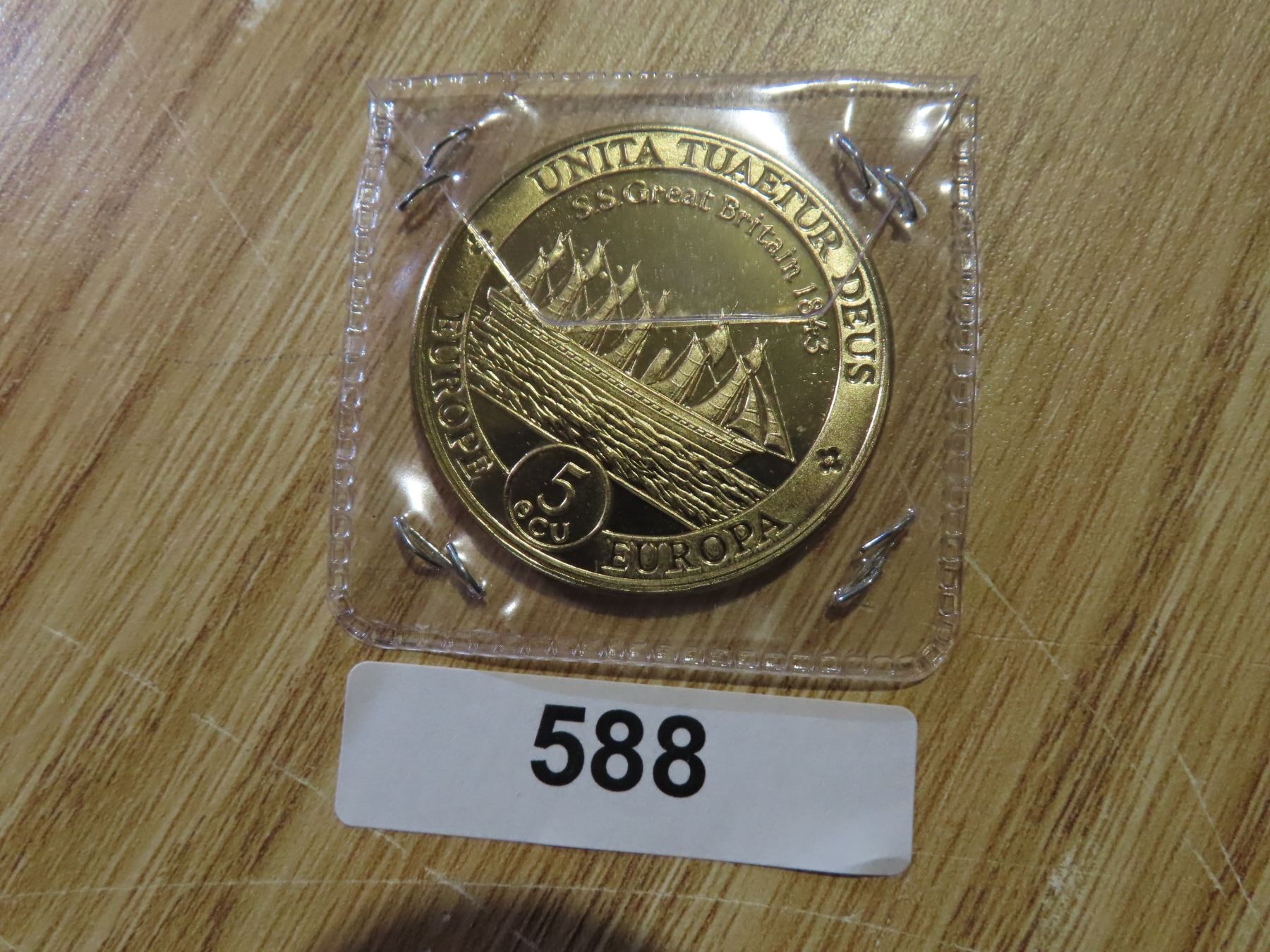 SS GREAT BRITAIN 5 ECU EUROPA PROOF GOLD PLATED COIN 1995