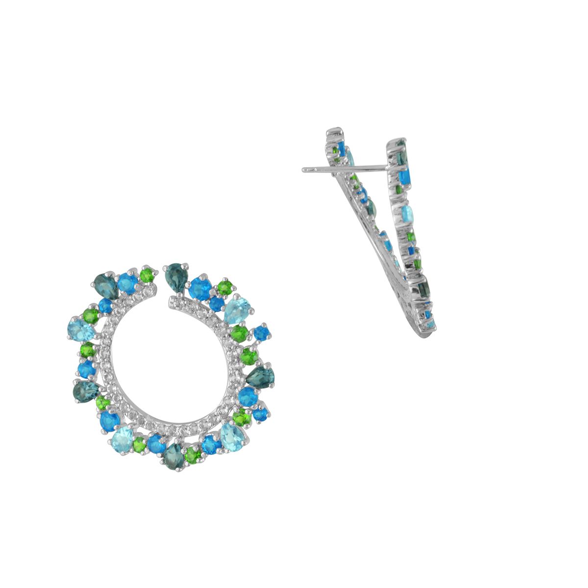 SS LDN / SW BLUE TOPAZ / APET / CHDI / WHITE TOPAZ EARRINGS (#7776MUL) TOTAL CT WEIGHT 7.351