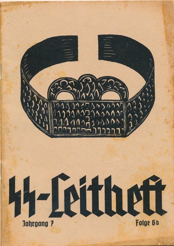 SS officer's magazines (3) issued by Himmler's office, one 26pp. 8vo., a selection of illustrated articles, one photo showing a Russian poster of a dagger piercing a Hitler-headed spider's body, other photos of "Aryan" young ladies, Himmler, etc., the second, 34pp. 8vo., showing SS advances in Greece and comparing themselves to the Trojans, etc., the third more mundane content on Frederick the Great, but also with a photo of Himmler and an insulting comic depicting the American influence in Europe with caricatures of blacks, Jews, gangsters, FDR, etc.