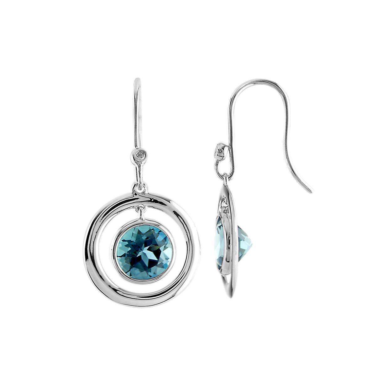 SS LONDON BLUE TOPAZ / DIAMOND FISHHOOK EARRINGS (#7356LDN) TOTAL CT WEIGHT 4.3