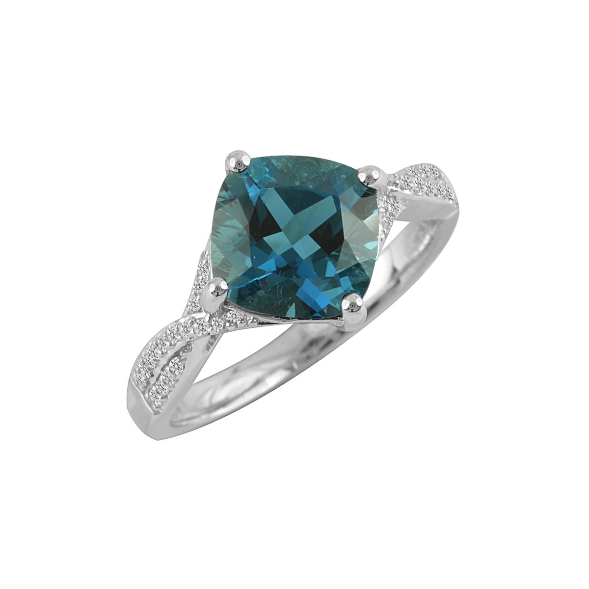 SS LONDON BLUE TOPAZ / DIAMOND RING - Size 7 (#10167LDN) TOTAL CT WEIGHT 2.25