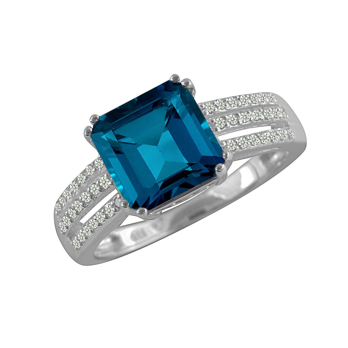 SS LONDON BLUE TOPAZ / DIAMOND RING - Size 7 (#10182LDN) TOTAL CT WEIGHT 2.55