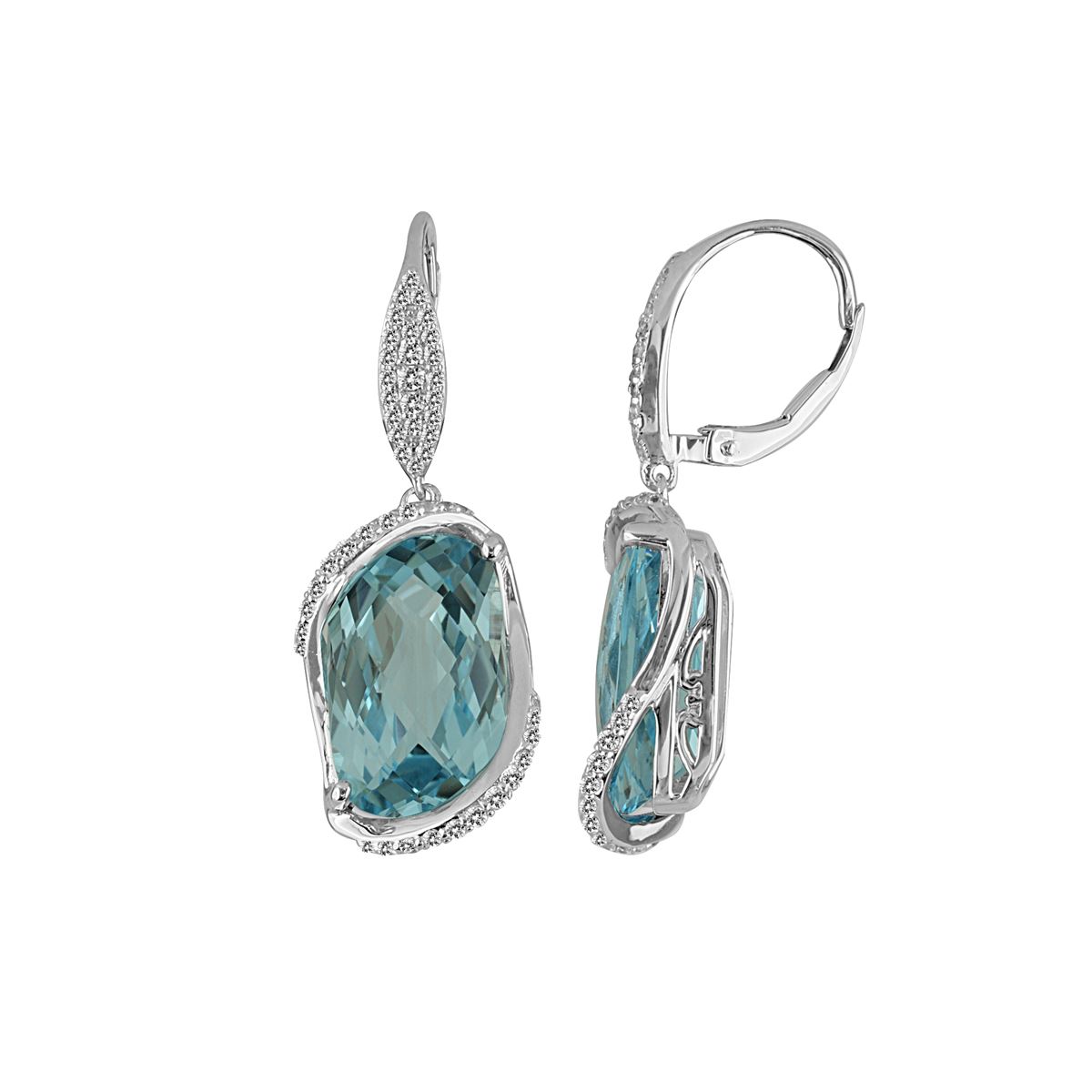 SS SKY BLUE TOPAZ / WHITE TOPAZ LEVERBK EARRINGS (#10231MUL) TOTAL CT WEIGHT 15.13