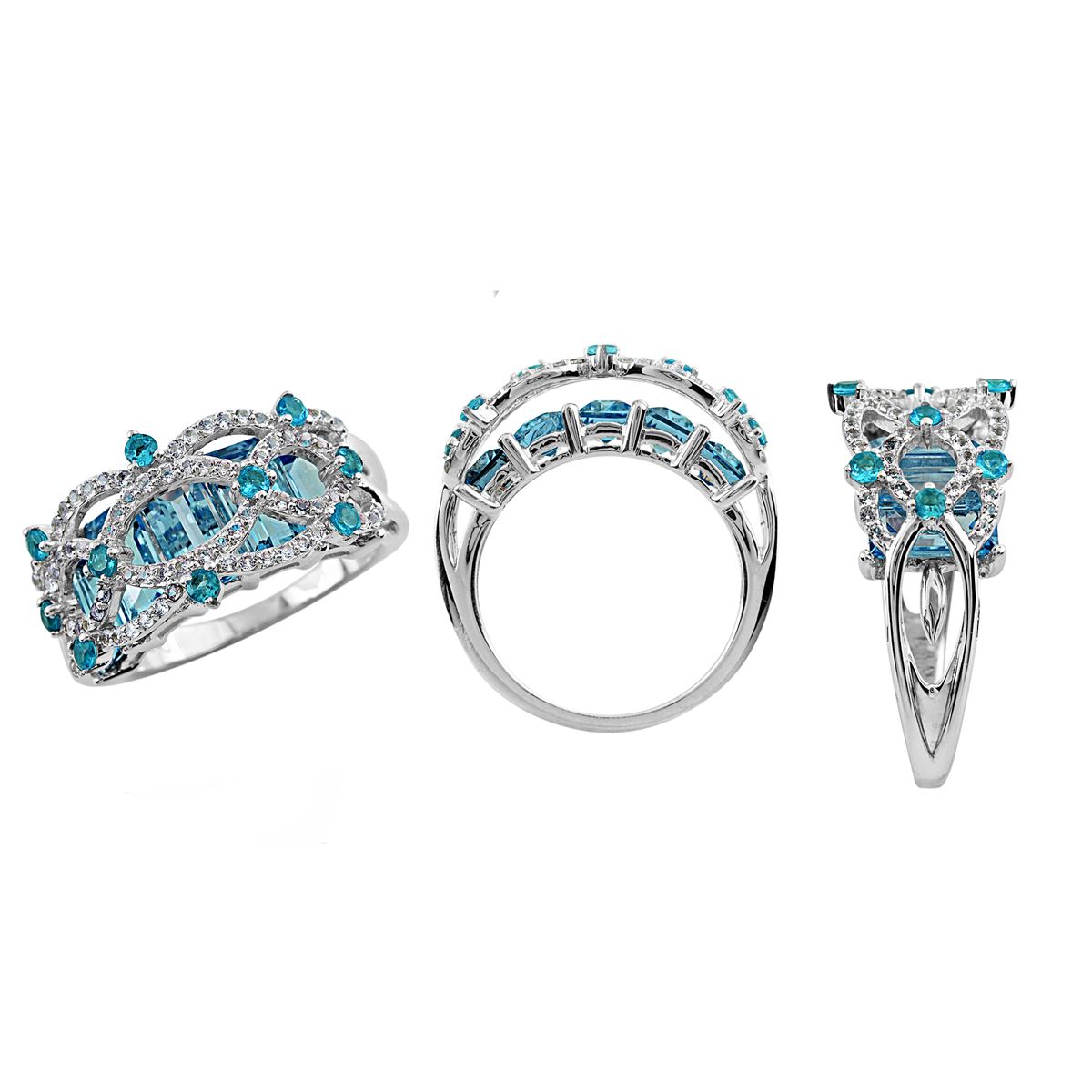 SS SWISS BLUE TOPAZ / APETITE / WHITE TOPAZ RING - Size 7 (#9985MUL1) TOTAL CT WEIGHT 7.324