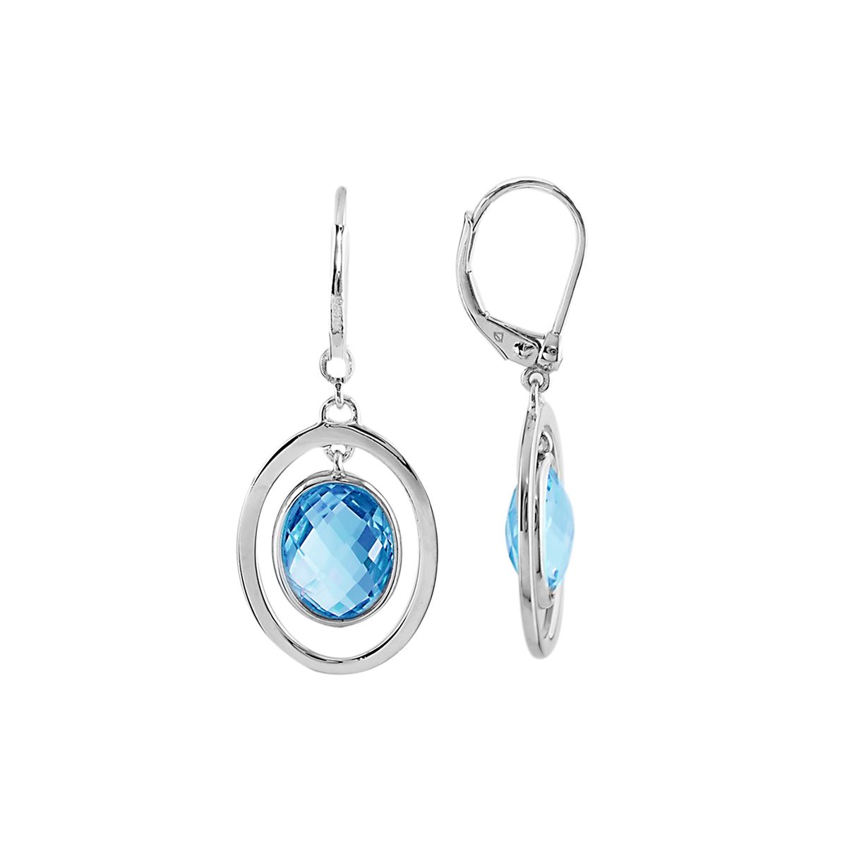 SS SWISS BLUE TOPAZ / DIA WIRE WRAPPED LEVERBACK EARRINGS (#7044SW) TOTAL CT WEIGHT 6.96