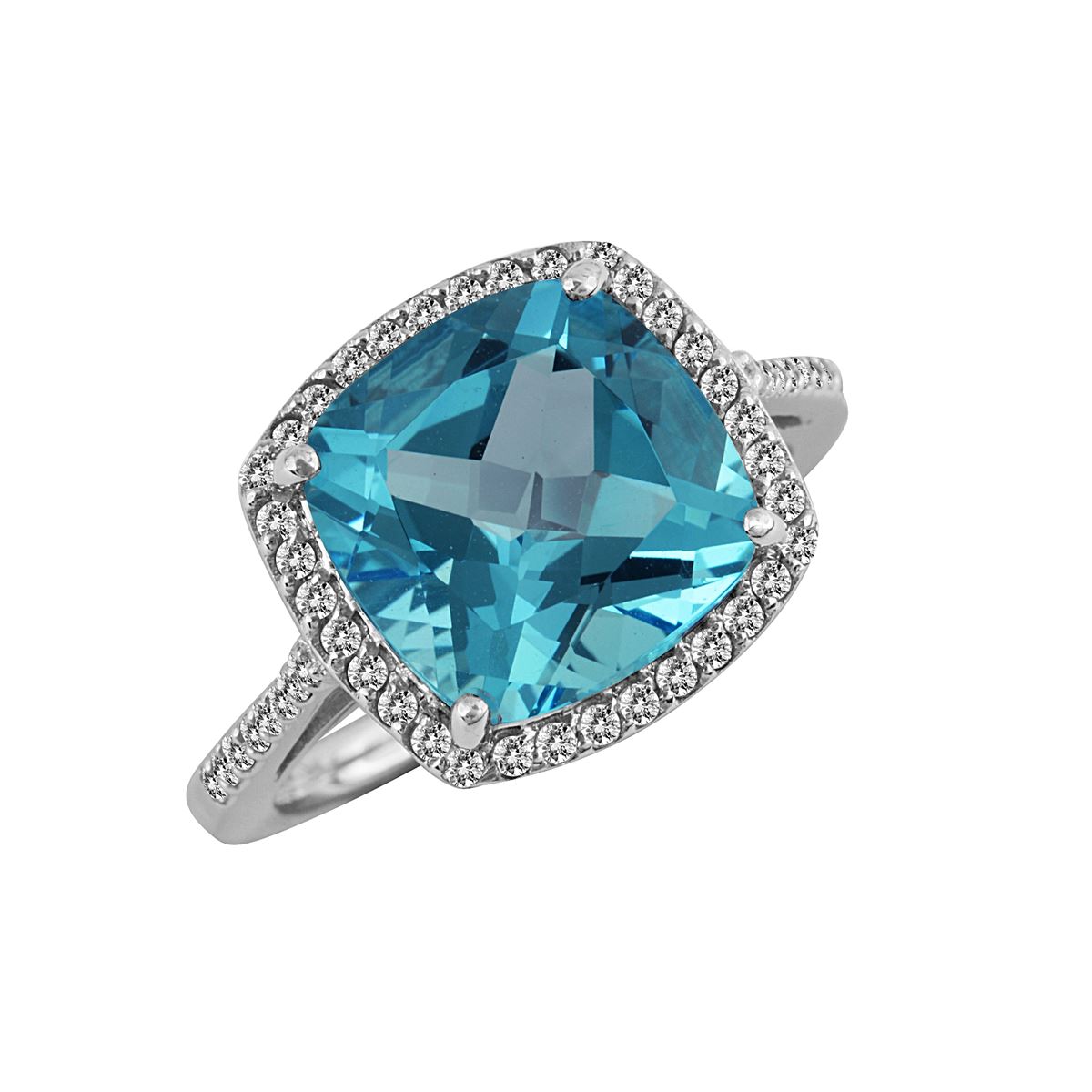 SS SWISS BLUE TOPAZ / DIAMOND RING - Size 7 (#10205SW) TOTAL CT WEIGHT 4.25