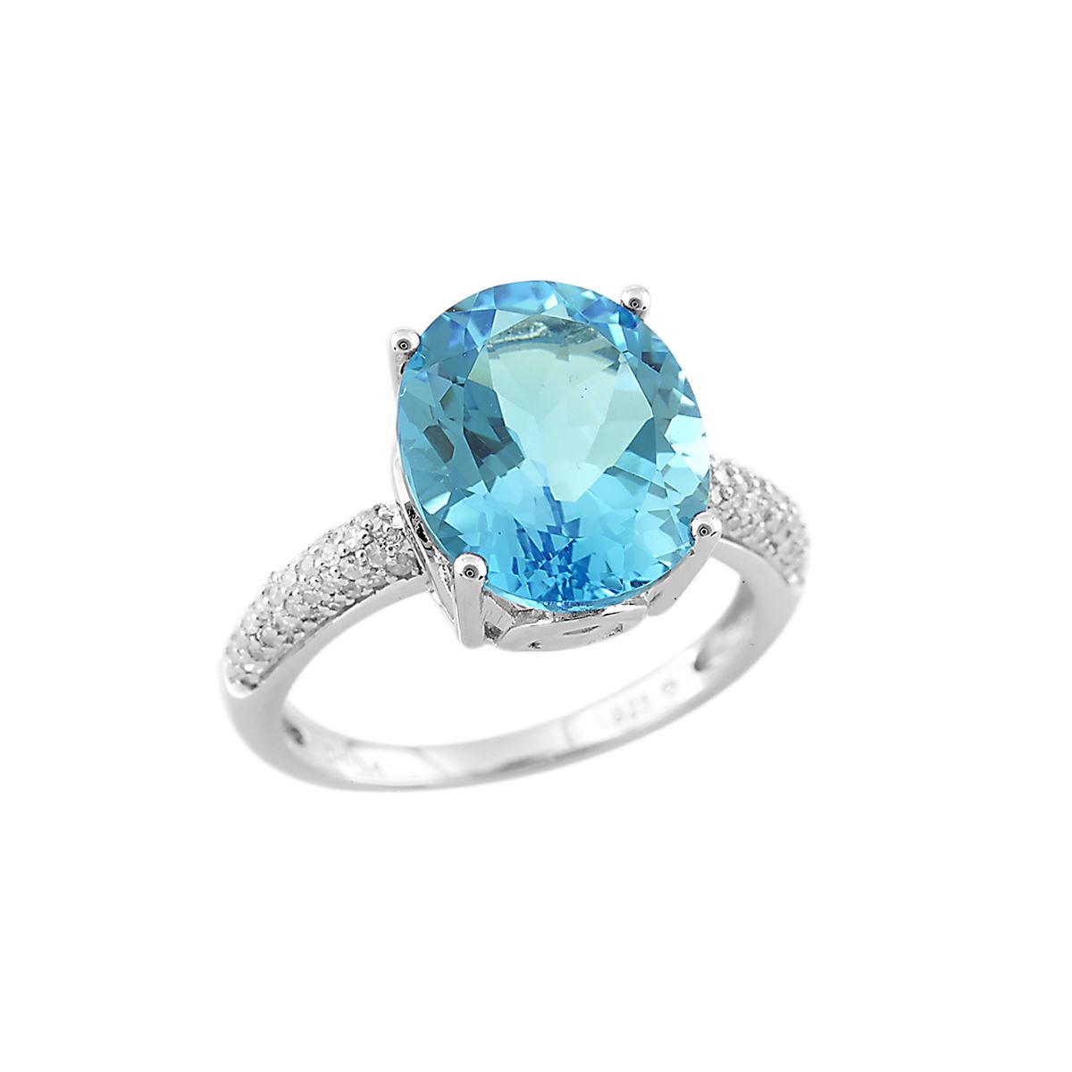 SS SWISS BLUE TOPAZ / DIAMOND RING - Size 7 (#9540SW) TOTAL CT WEIGHT 4.7