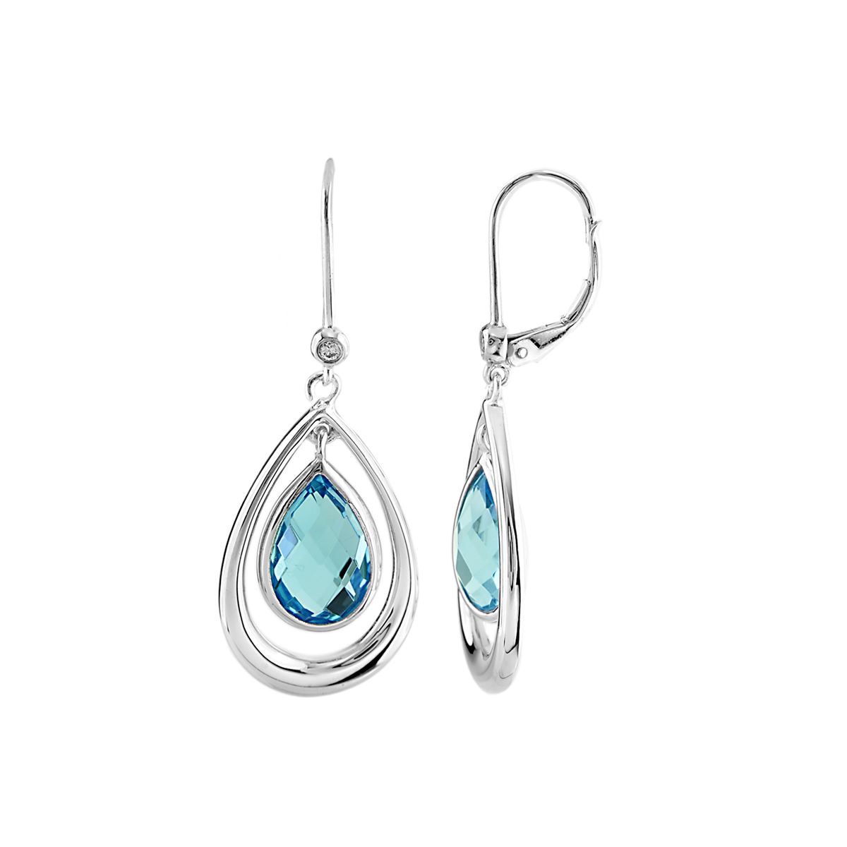 SS SWISS BLUE TOPAZ / DIAMOND WIRE WRAPPED LVBK EARRINGS (#7043SW) TOTAL CT WEIGHT 6.4