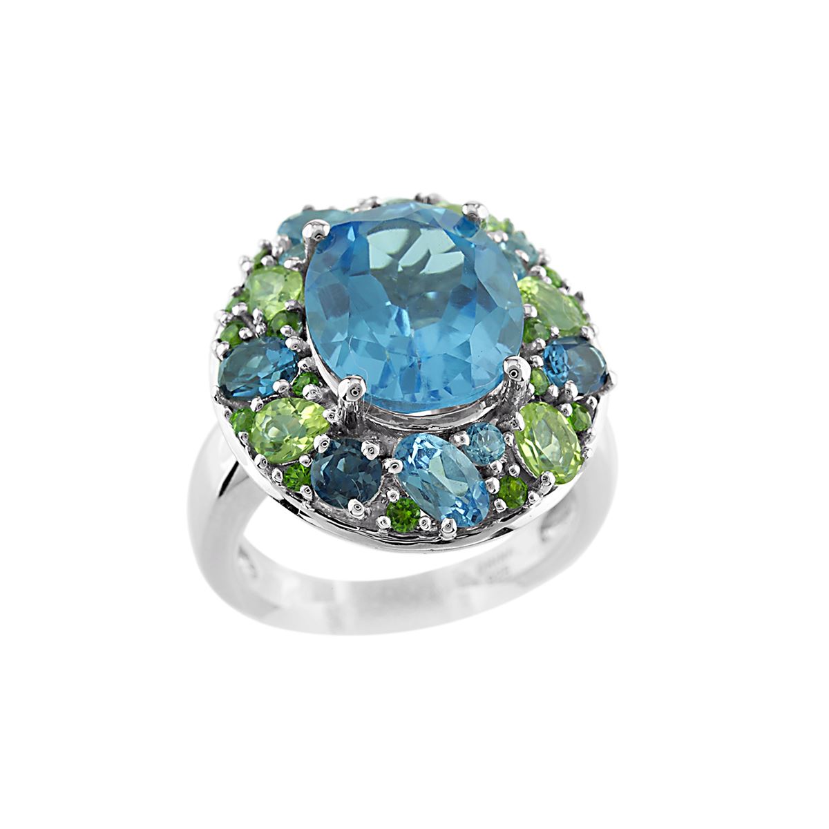 SS SWISS BLUE TOPAZ / LDN BLUE TOPAZ / PERIDOT / CHDI RING - Size 7 (#8839MUL) TOTAL CT WEIGHT 7.3585