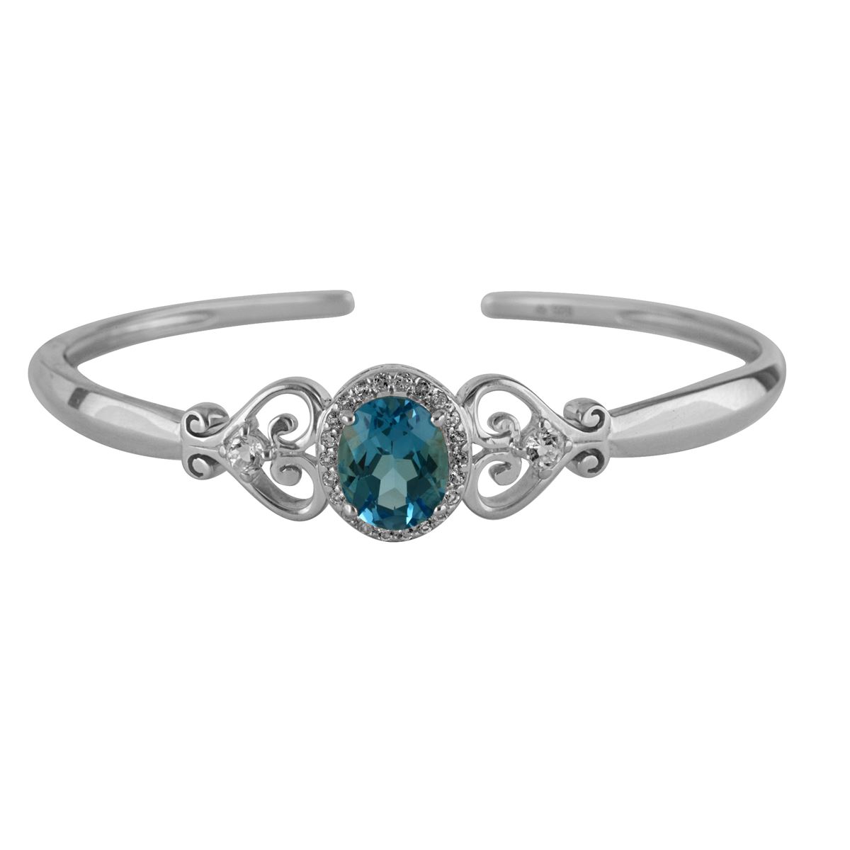 SS SWISS BLUE TOPAZ / WHITE TOPAZ HINGED CUFF BANGLE (#10496MUL) TOTAL CT WEIGHT 3.432